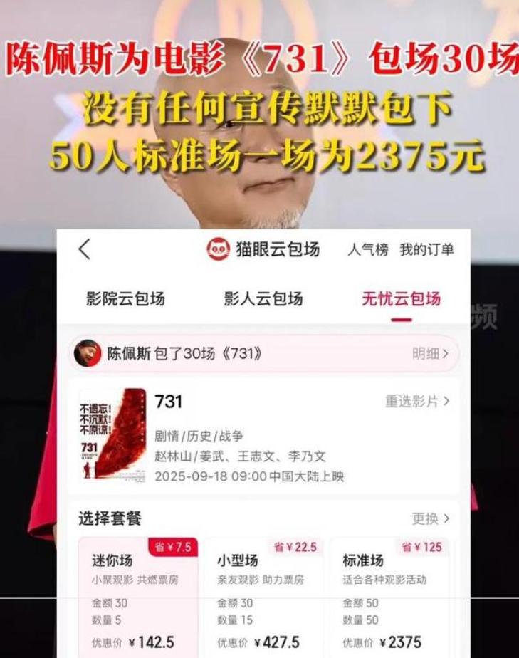 他没有声张,也没通知媒体,而是直接找影院包下了30场放映,全都是普通标准厅,每场50个座位,平均一场2375元。